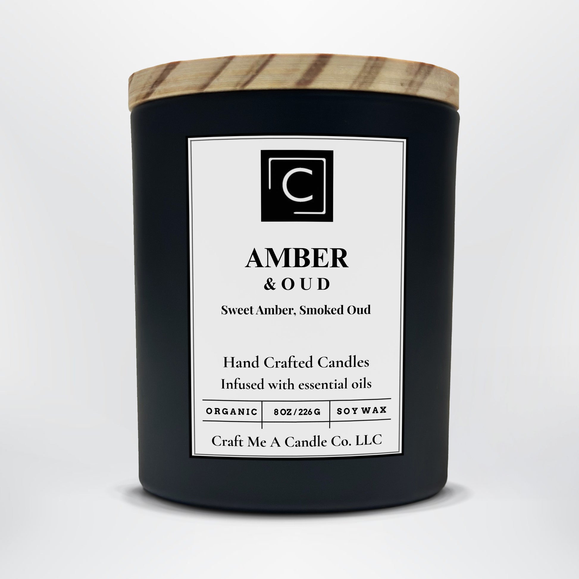Amber & Oud Scented Candle – Sweet Amber, Smoked Oud | Natural Soy Wax Candles | Round Jar Candles