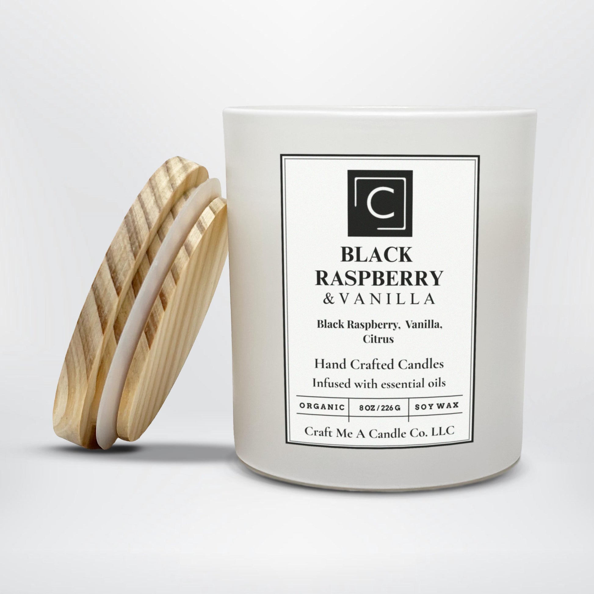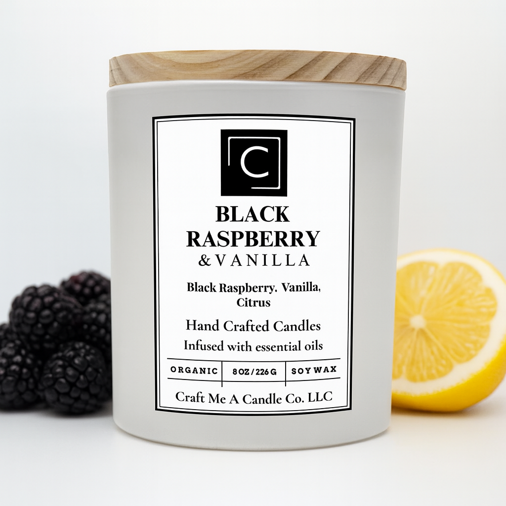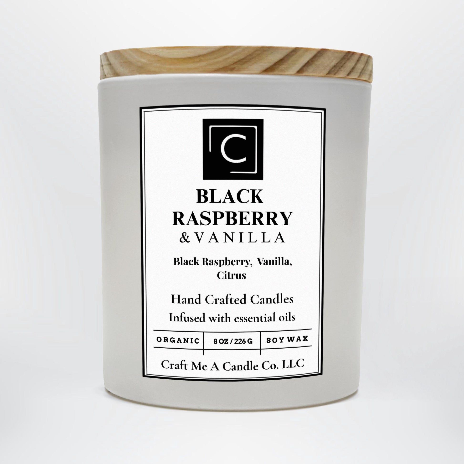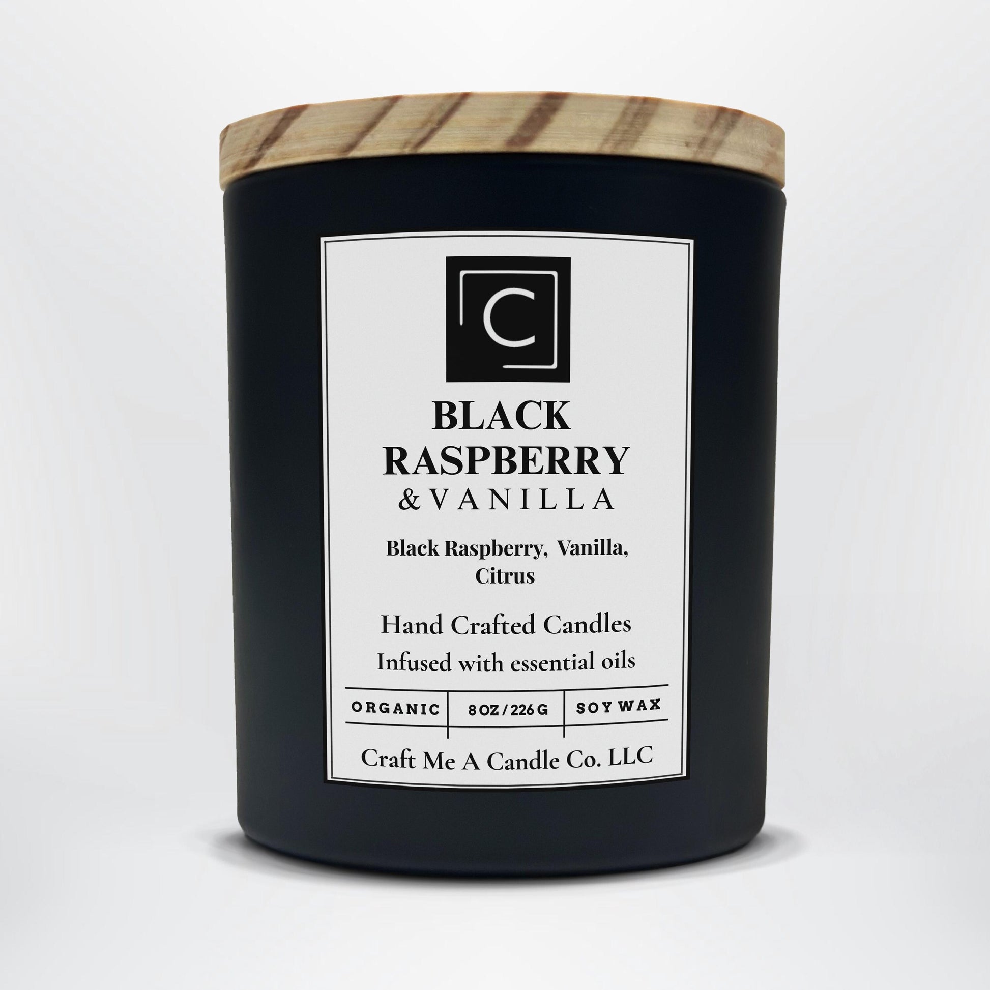 Juicy black raspberry, creamy vanilla, and a hint of citrus swirl together in a lush blend that evokes warmth, indulgence, and sweet, sunlit moments in every jar. Note Profile: Top: Black Raspberry Middle: Vanilla Base: Citrus Burn times: 8oz matte glass jar: 35+ hours 14oz matte glass jar: 60+ hours Hand poured in small batches. Natural Soy and Coconut Soy Blend 100% cotton wick High quality phthalate-free fragrance oils including essential oils Re-usable matte jars with wooden lids