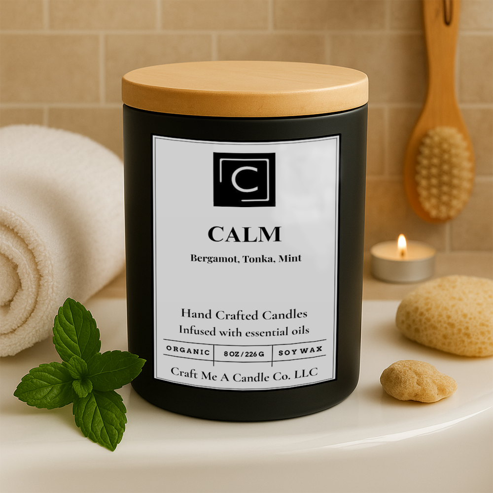 Calm Scented Candle – Bergamont, Tonka, Mint | Natural Soy Wax Candles | Round Jar Candles