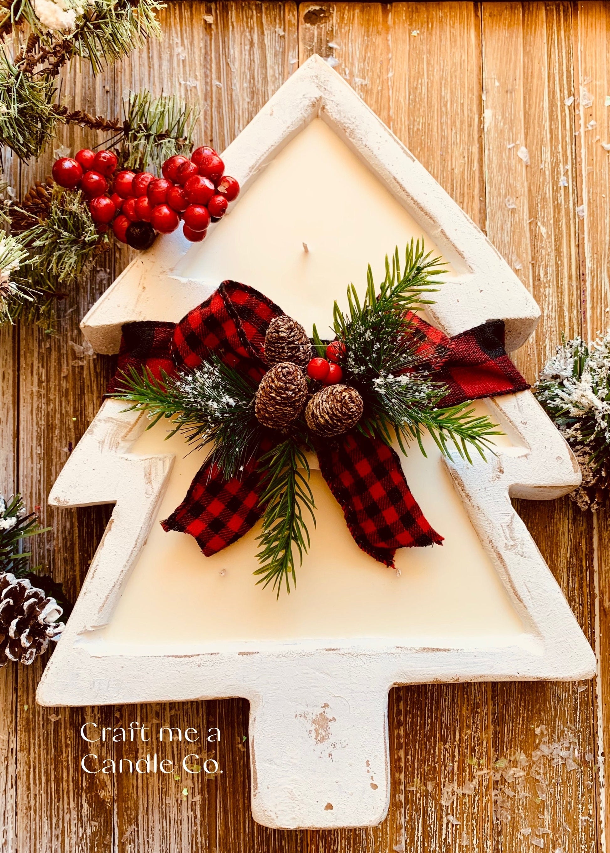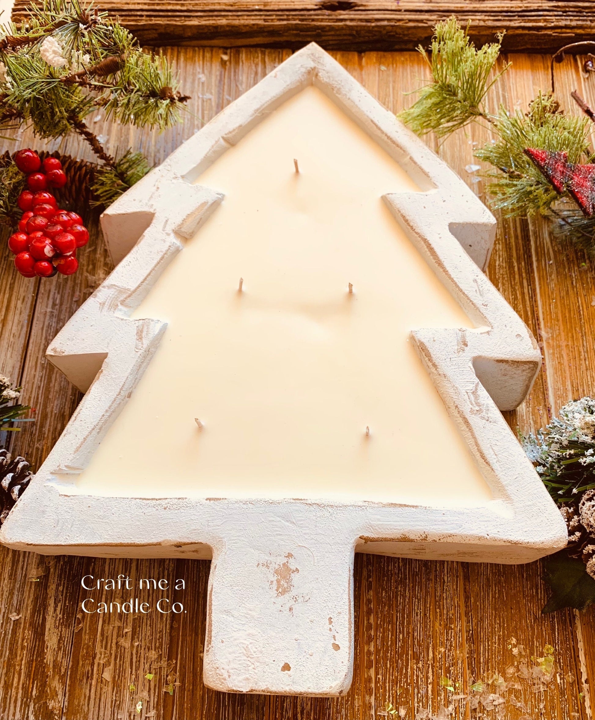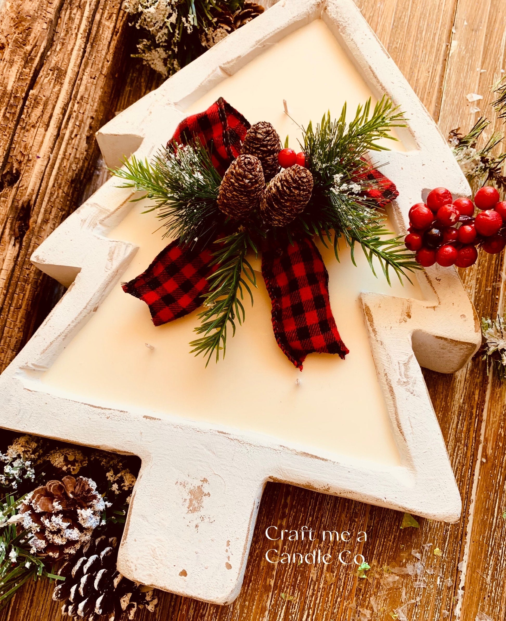 Large Christmas Tree Wood Dough Bowl Candle - Tree Scented Christmas Candle