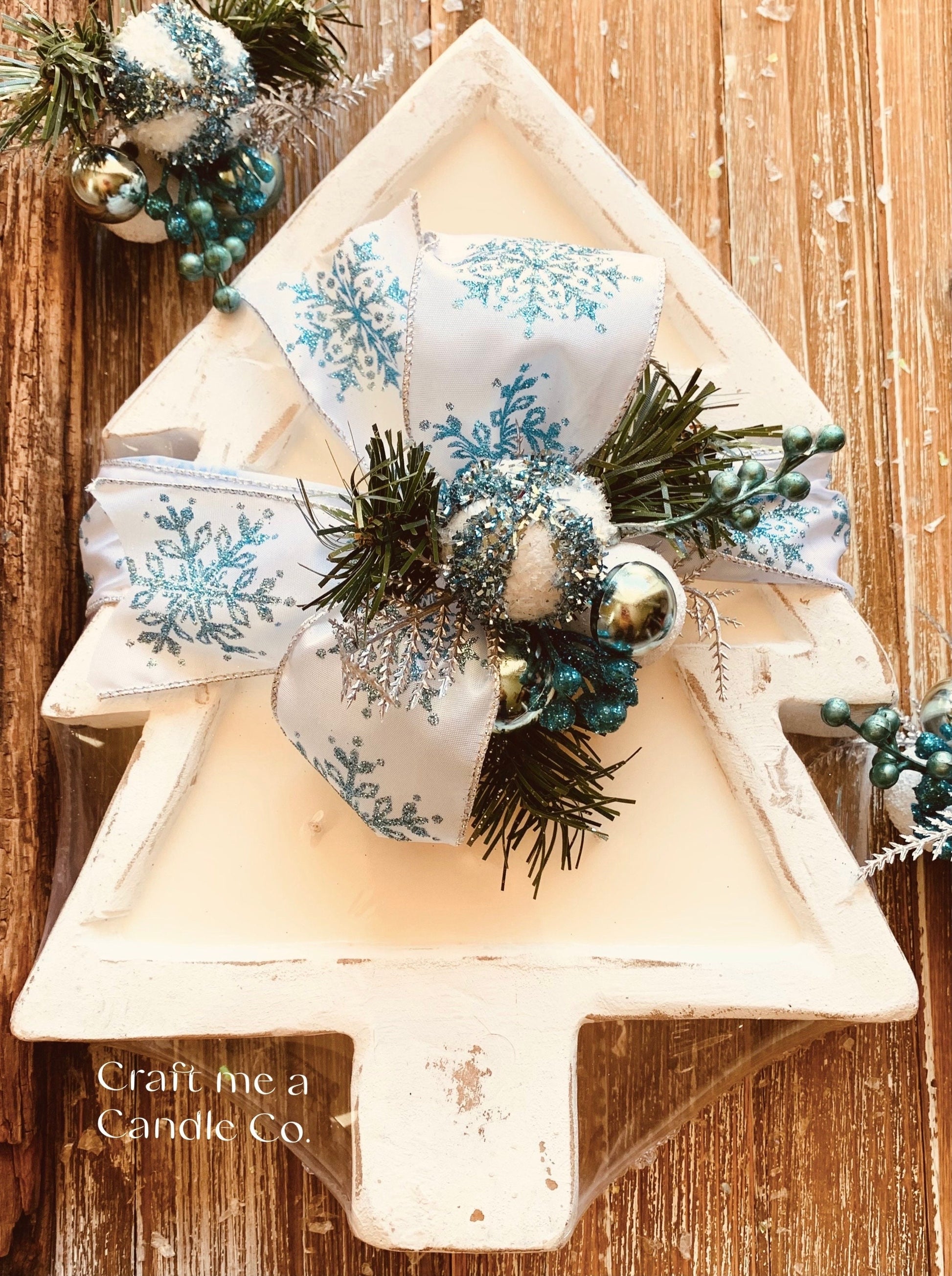 Large Christmas Tree Wood Dough Bowl -Distressed White 9 x13 x 1.5