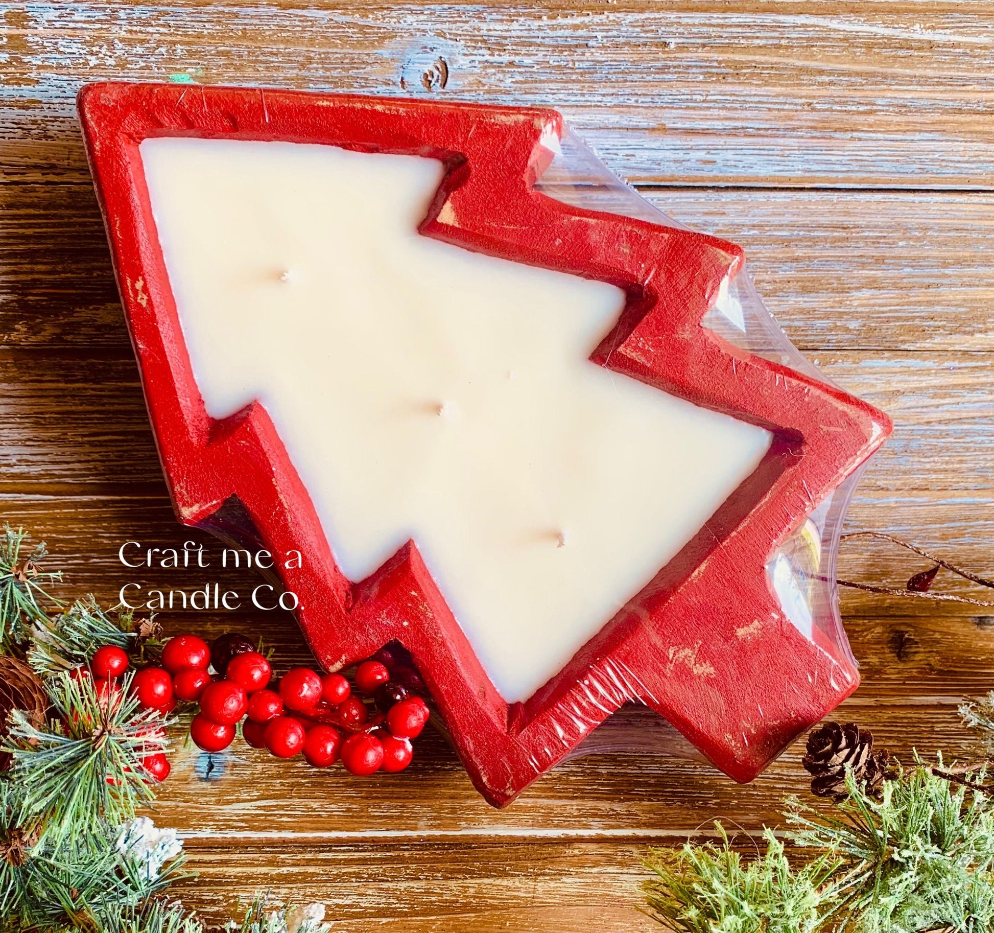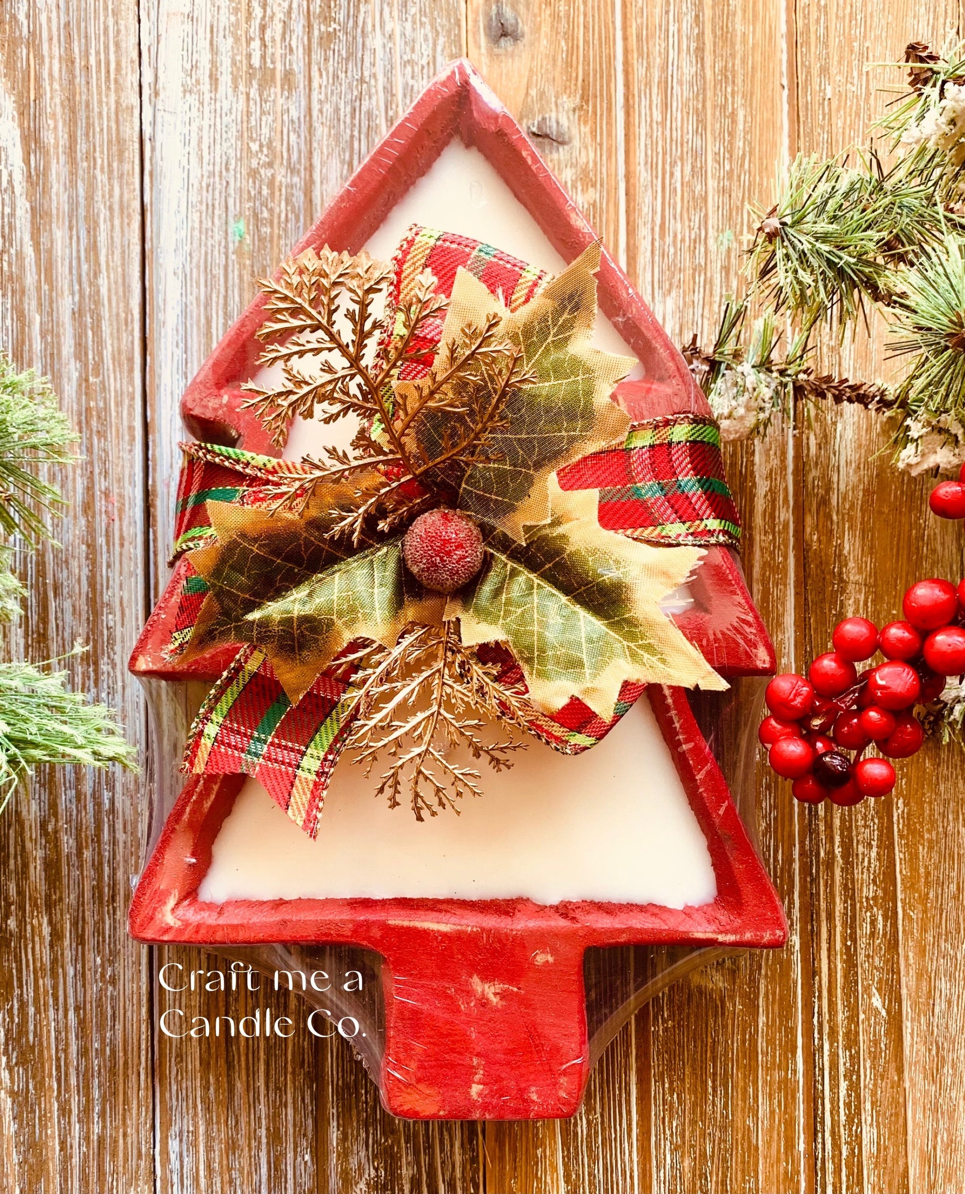 Mini Christmas Tree Wood Dough Bowl Candle - Mini Christmas Candle