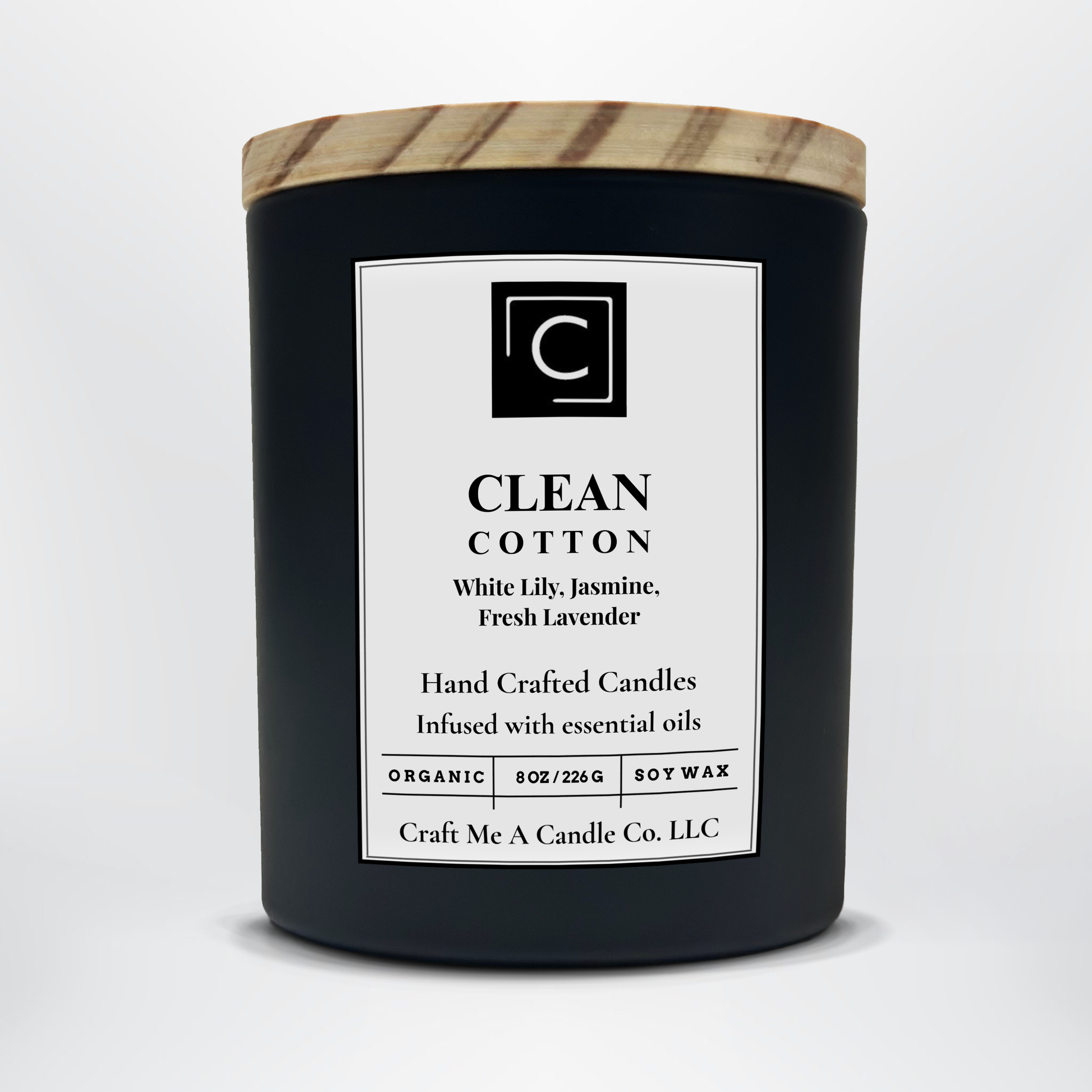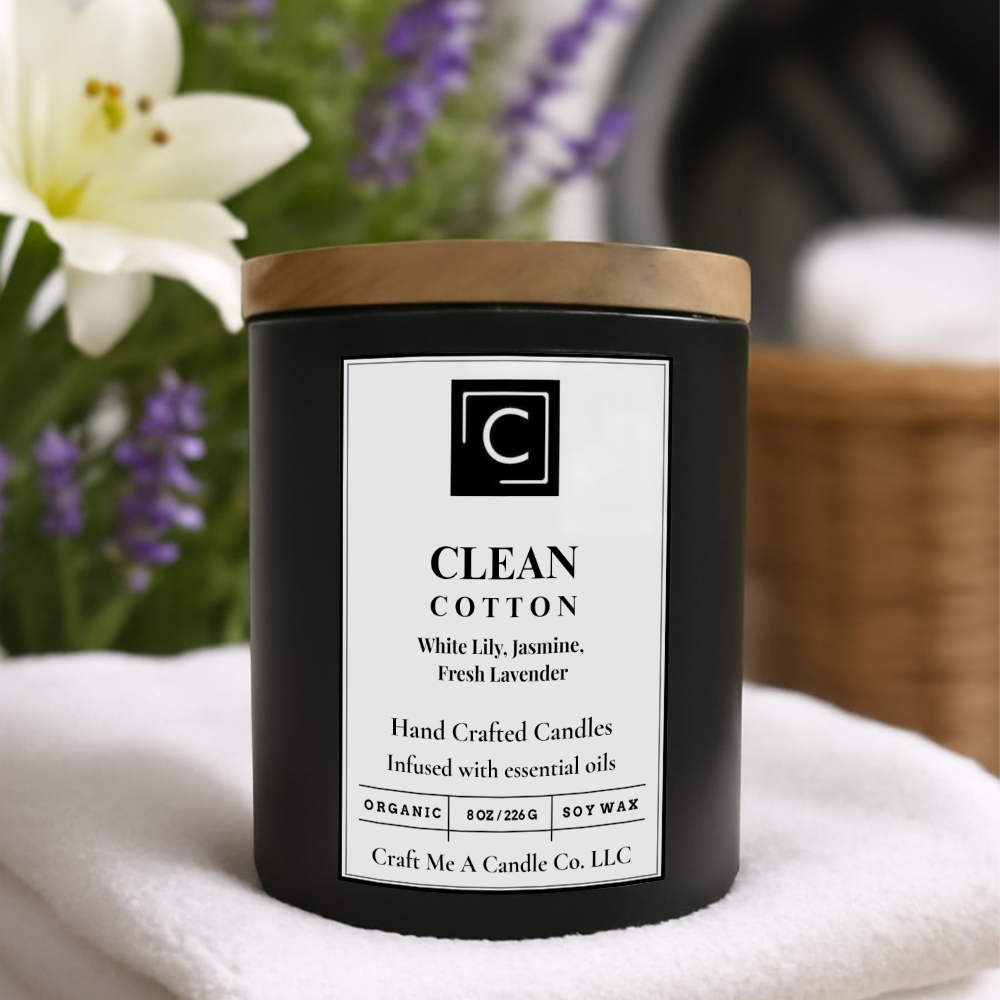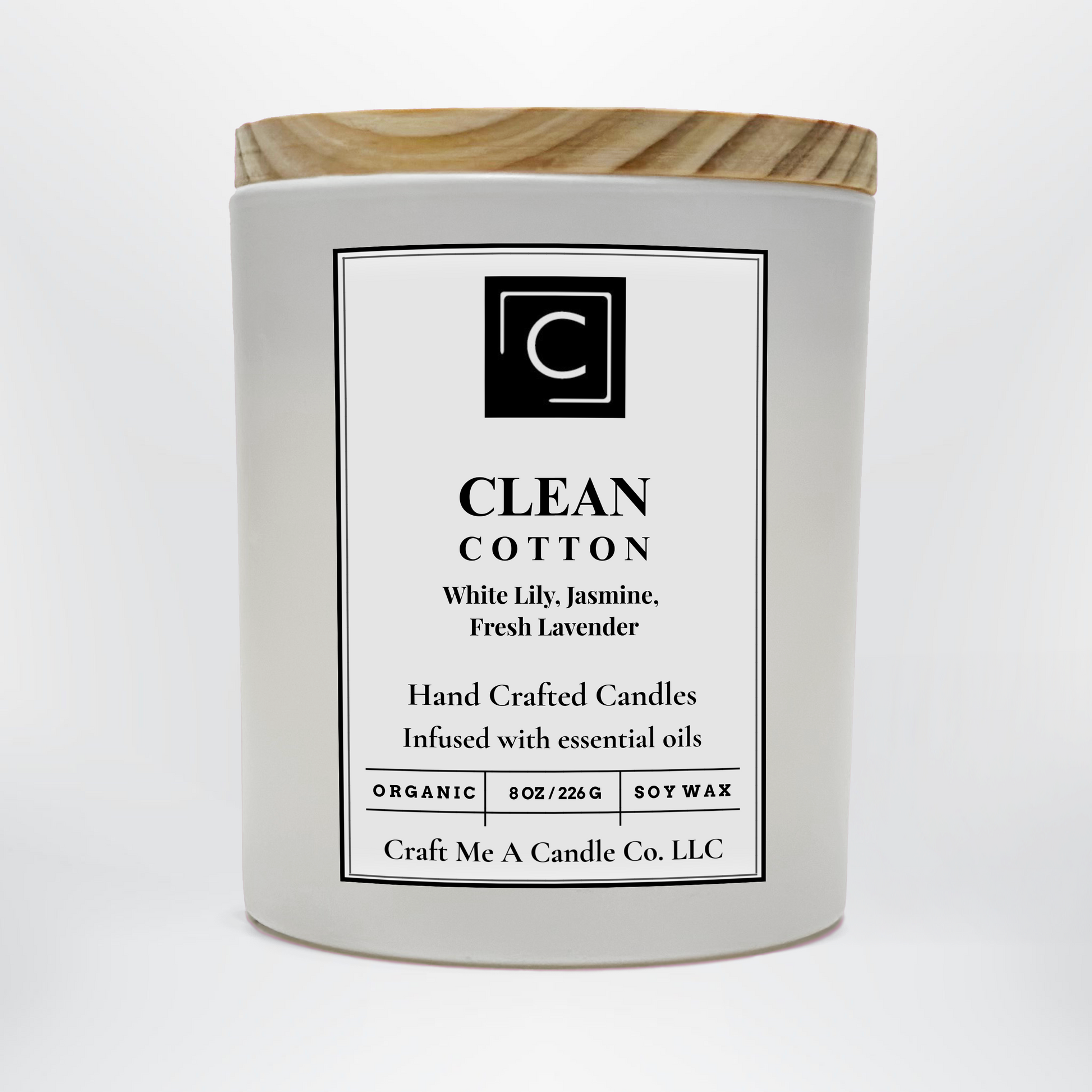 Clean Cotton Scented Candle – White Lily, Jasmine, Fresh Lavender | Natural Soy Wax Candles | Round Jar Candles