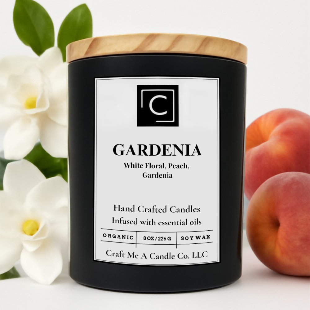 Delicate gardenia, juicy peach, and soft white florals bloom together in a graceful harmony that evokes fresh mornings, tender memories, and peaceful elegance in every jar.