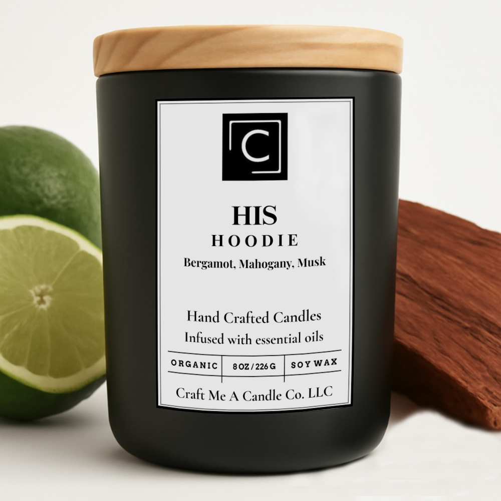 His Hoodie Scented Candle – Bergamot, Mahogany, Musk | Natural Soy Wax Candles | Round Jar Candles