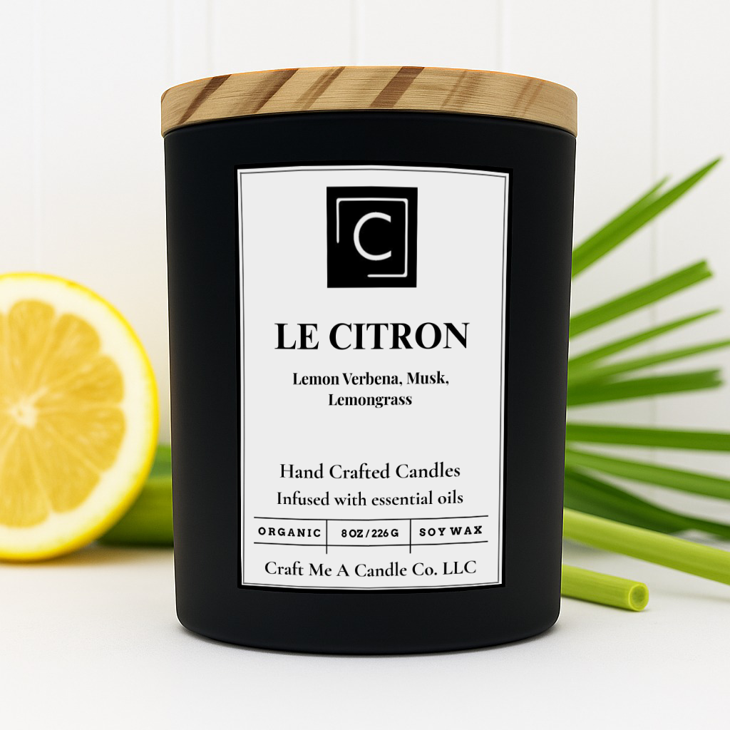 Le Citron Scented Candle – Lemon Verbena, Musk, Lemongrass | Natural Soy Wax Candles | Round Jar Candles