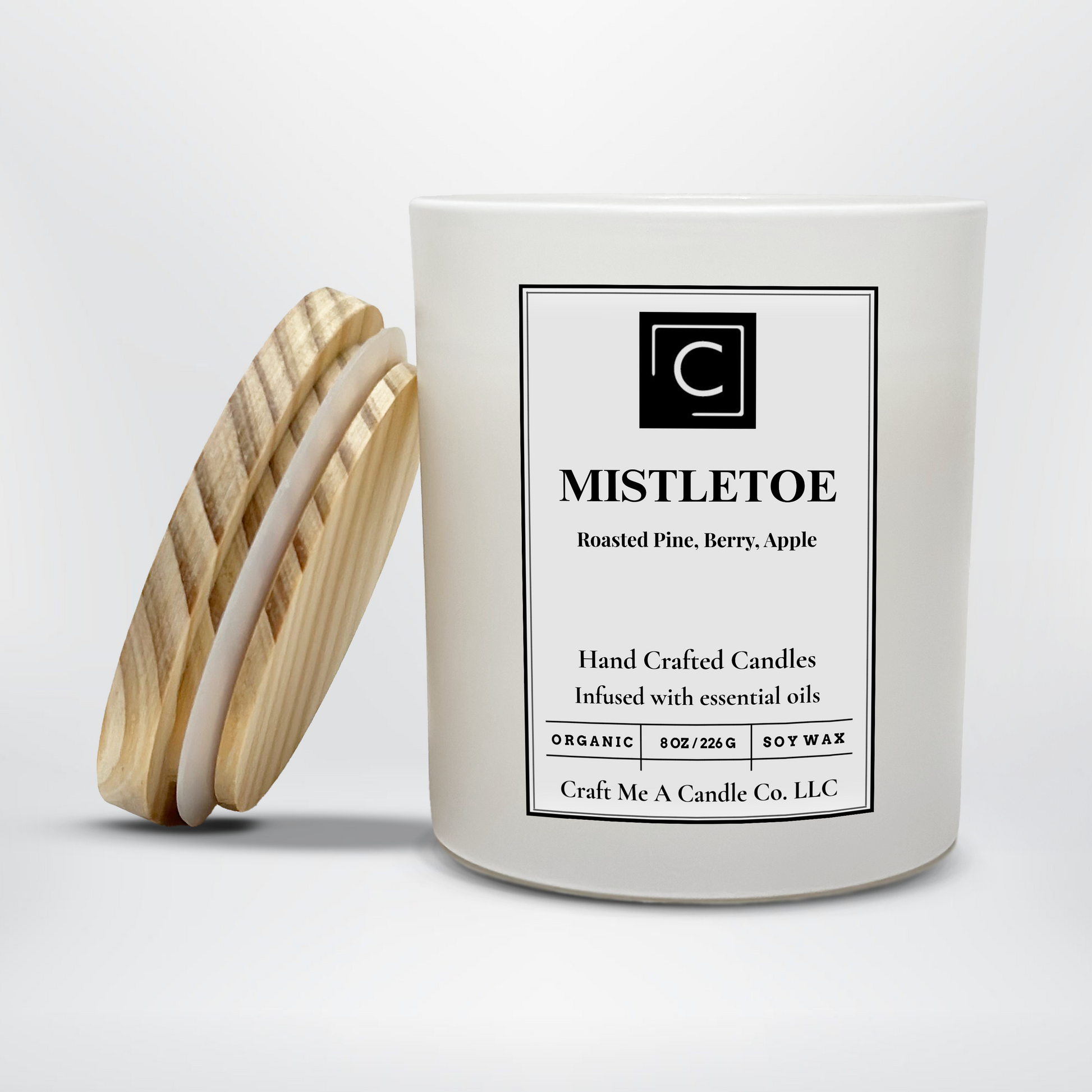 Mistletoe Candle – Roasted Pine Berry Apple – Hand Poured Soy Coconut Blend with Wooden Lid – 8oz & 14oz