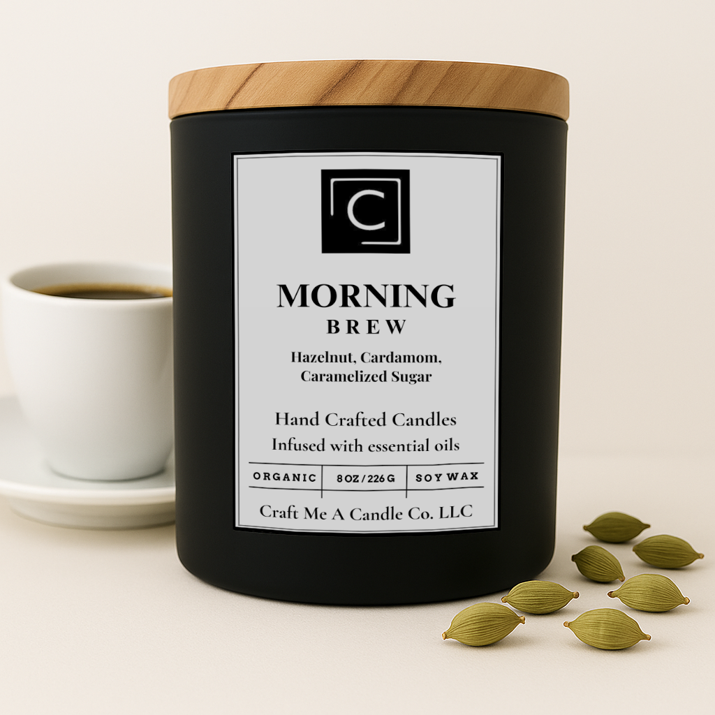 Morning Brew Scented Candle – Hazelnut, Cardamom, Caramelized Sugar | Natural Soy Wax Candles | Round Jar Candles