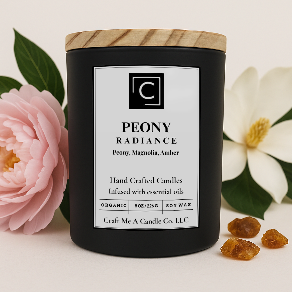 Delicate peony, graceful magnolia, and warm amber bloom in harmony, creating a radiant bouquet that fills the air with elegance, light, and gentle serenity in every jar.