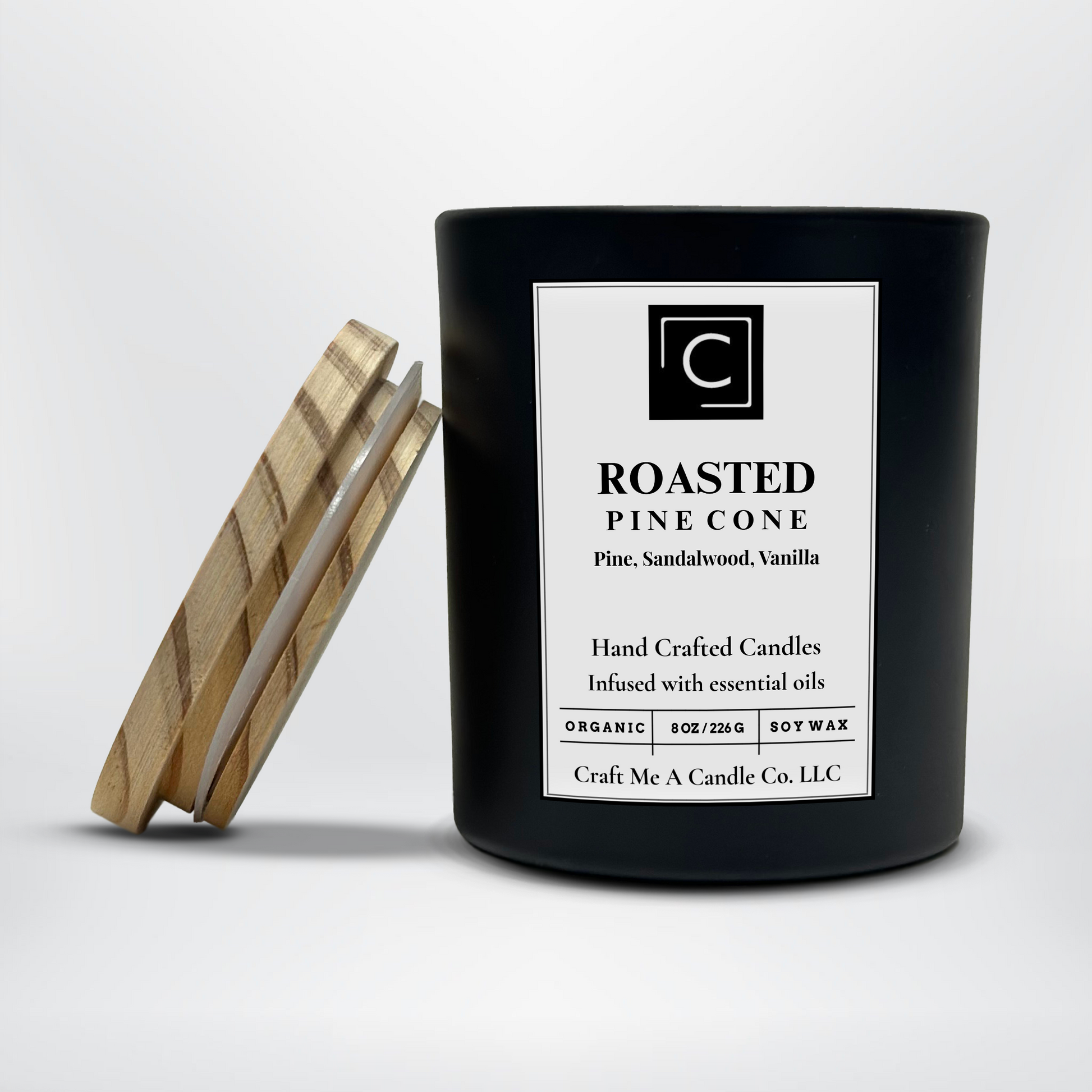 Roasted Pine Cone Candle – Pine Sandalwood Vanilla – Hand Poured Soy Coconut Blend with Wooden Lid – 8oz & 14oz