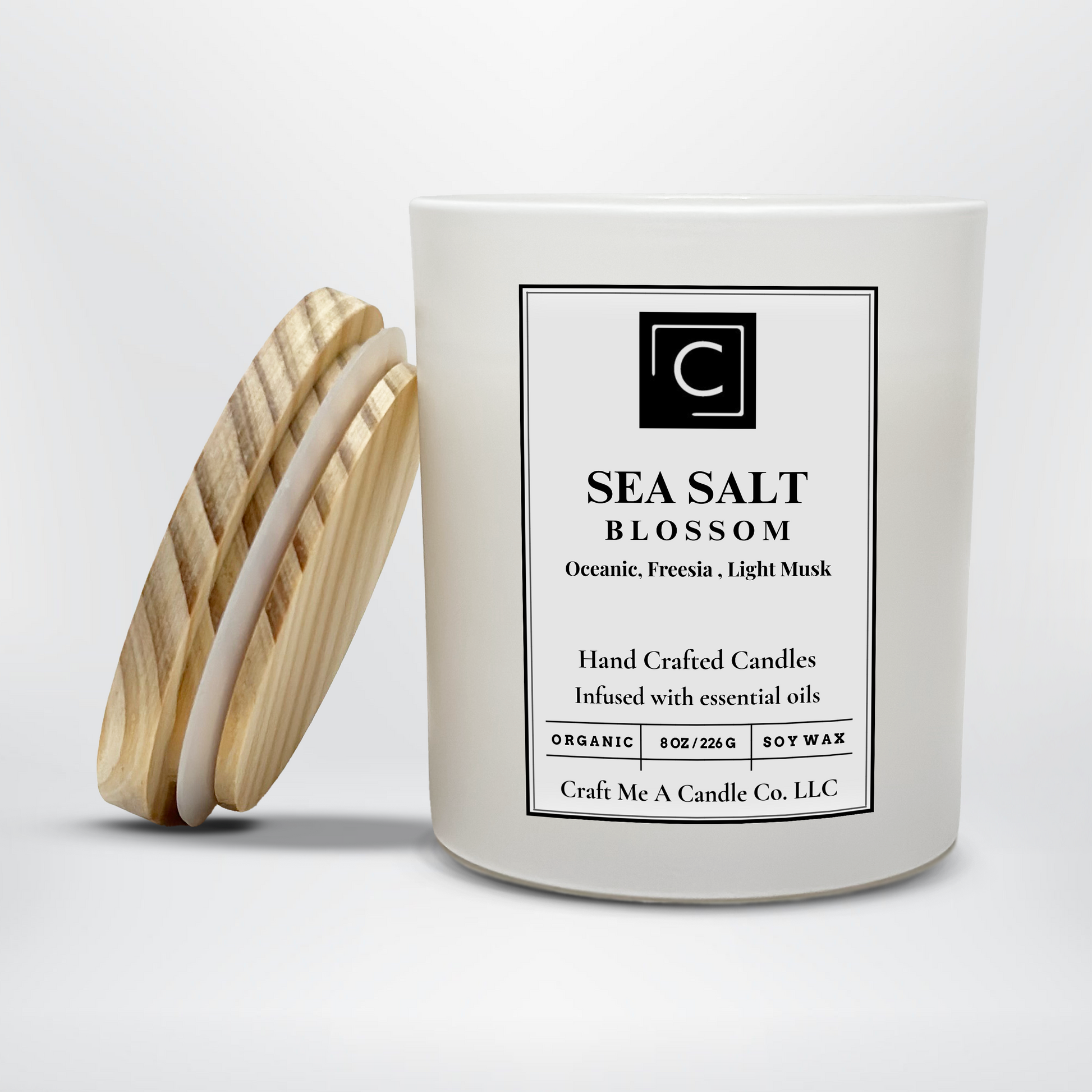 Sea Salt Blossom Scented Candle – Oceanic, Freesia, Light Musk | Natural Soy Wax Candles | Round Jar Candles