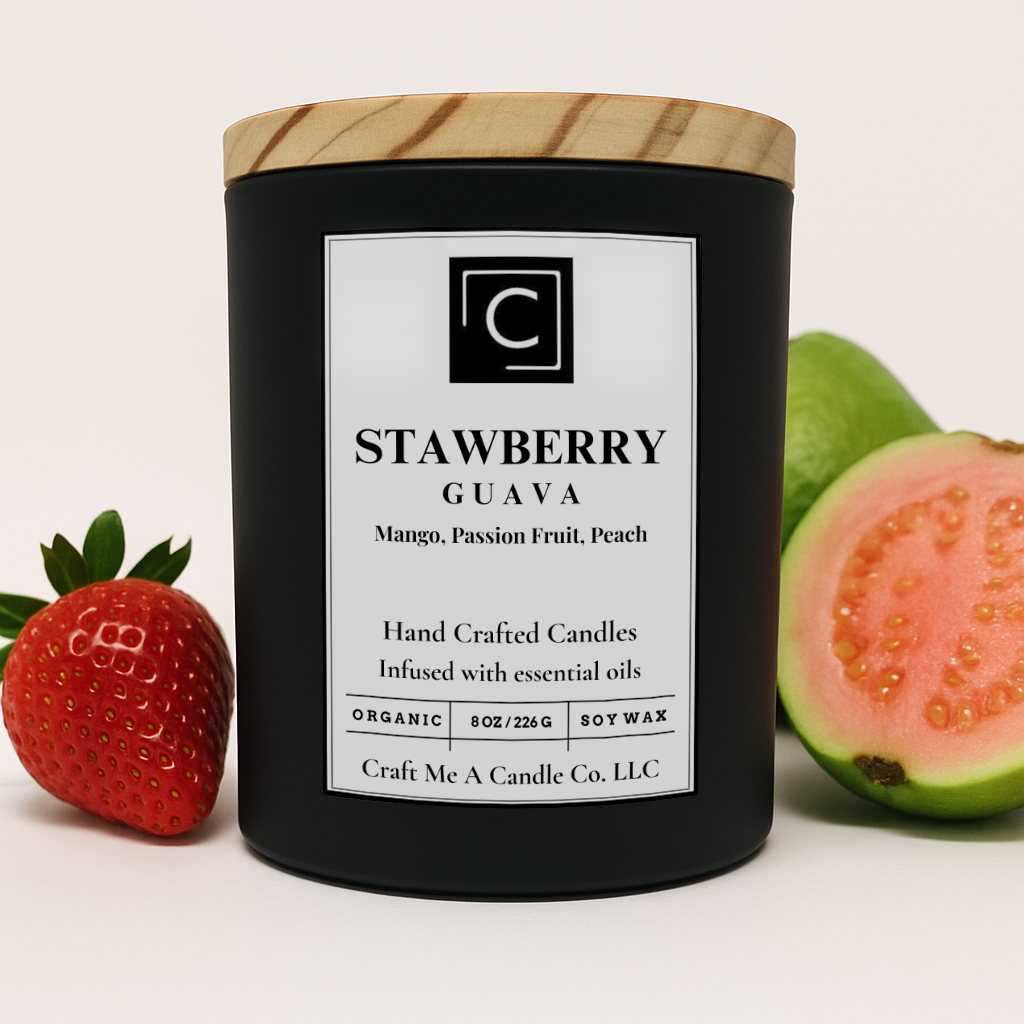Strawberry Guava Scented Candle – Mango, Passion Fruit, Peach | Natural Soy Wax Candles | Round Jar Candles